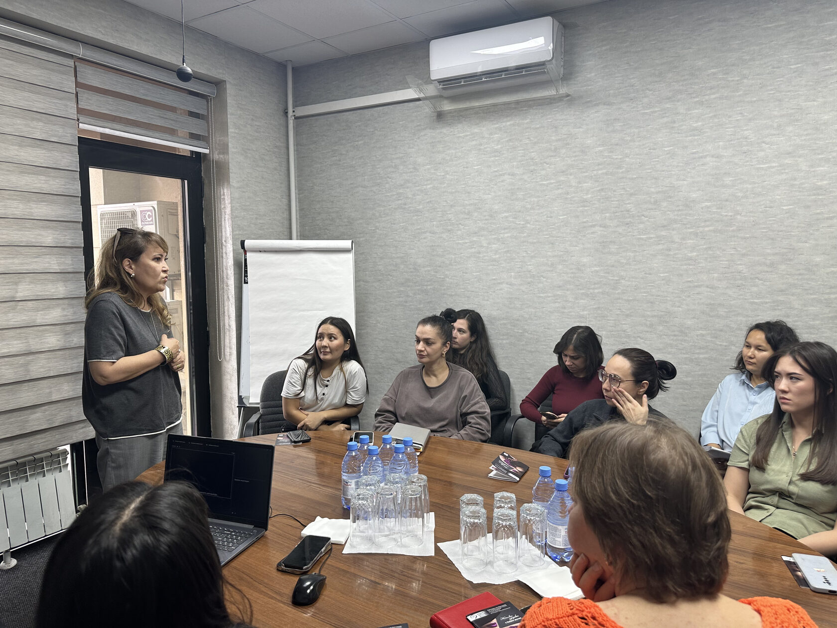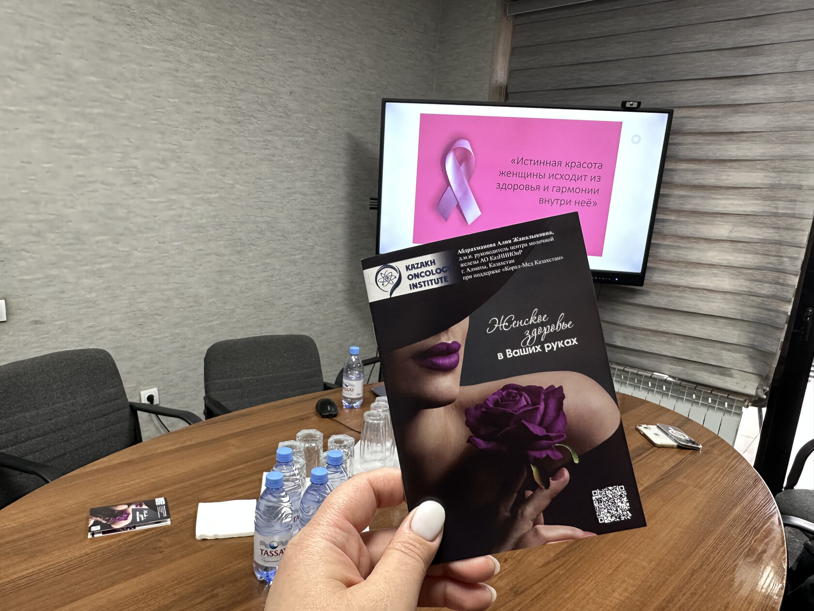 A lecture was organized for female employees and delivered by experts from the Mammology Center of the Kazakh Research Institute of Oncology and Radiology in Almaty — Aliya Zhanalykovna Abdrakhmanova, Head of the Center, and Nikolay Sergeyevich Khvan, an oncologist-mammologist.